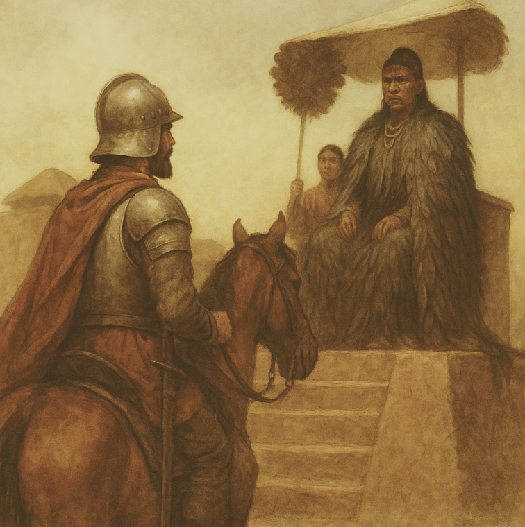We performed a juego de cañas, our riding display, as we often did to impress and intimidate. Lances clattered and horses surged in rehearsed aggression. The people watched. The chief did not move.