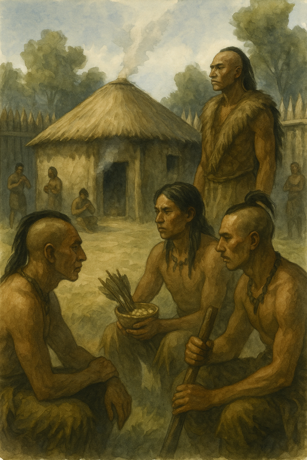 The Great Council has been in session for what seems like an eternity. The smoke from their fire has never ceased, a constant, thin reminder of the grave deliberations within. We, the younger warriors, gather in respectful silence outside, catching only fragments of words – “palisades,” “ambush,” “the river crossings,” “if Mabila falls…” Each phrase is a stone dropped into the deep well of our uncertainty. There is no fear that paralyzes, not among the Chickasaw. But there is a cold, hard understanding of what stands at the threshold of our world. We have faced enemies before, fierce nations from the north, cunning raiders from the west. We have never faced men who shine, who ride monsters, who kill with angry fire from afar.